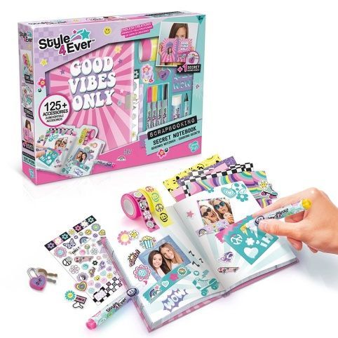Nakreslete si svá tajemství do deníku se zámečkem Style4Ever! Tento kreativní set obsahuje tajný deník, 4 fixy, barevné role lepenky, archy samolepek, lepidlo, tužku, šablony. Set kreativného tajného deníčku je ideální pro děti od 6 let, podporuje rozvoj jemné motoriky, kreativity a koncentrace. Perfektní zábava pro děti!