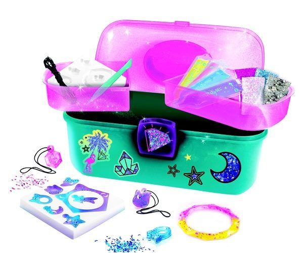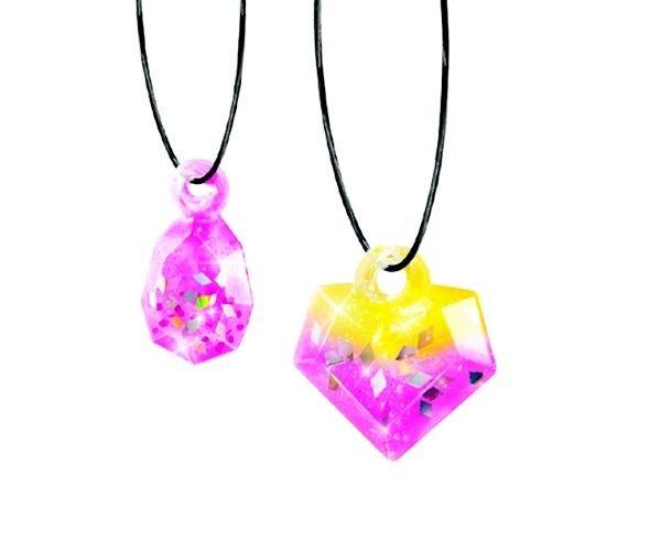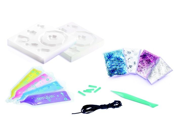Je to jako kouzlo. Vyberte si přívěsek, náramek nebo prstýnek, nalijte do formy gelovou hmotu, přidejte třpytky a počkejte, až hmota ztuhne. Budete mít jedinečný silikonový šperk. Z této sady vyrobíte 14 různých šperků. Obsahuje: 1 kufřík, 2 formy, 4 sáčky s kouzelným gelem, 4 sáčky s dekoracemi, špachtliku, provázky a kolíčky. Věk: 8 +.