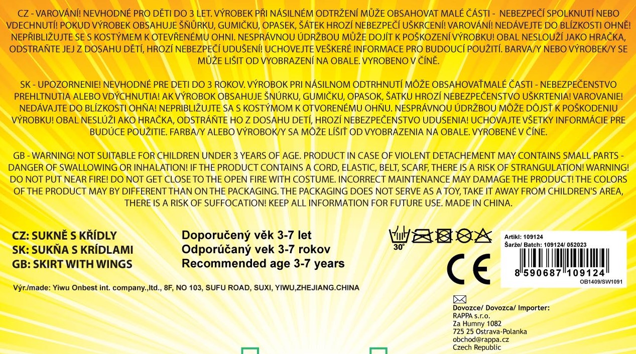 Roztomilá souprava pro všechny malé parádnice! Kostýmek červené barvy je určen pro holčičky ve věkovém rozmezí 3-10 let (104-150 cm). Balení obsahuje nadýchanou sukničku zdobenou puntíky a perfektně sladěná křídla.