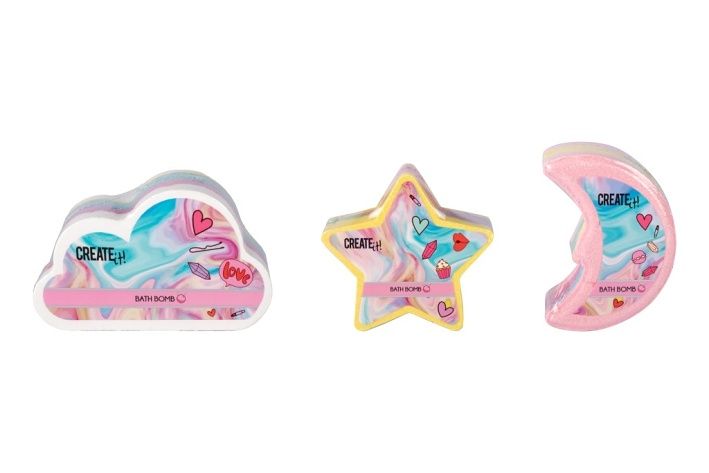 Šumivé barvy do vody ve tvaru měsíce, mraku a hvězdy.