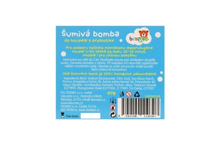 Dopřejte dětem zábavnou a voňavou koupel s barevnou šumivou bombou Beauted, která nejen potěší, ale také pečuje o pokožku. Obsahuje probiotika pro podporu přirozené ochrany kůže. Obohaceno o mandlový olej a ovesný extrakt. Dermatologicky testováno – šetrné k dětské pokožce. Český výrobek. Hmotnost 60 g. Použití: