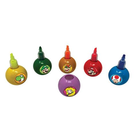Super Mario zvýrazňovače jsou originálním a zábavným produktem určeným především fanouškům této kultovní herní série. Každý zvýrazňovač má kulatý tvar a je vyveden v jasných, výrazných barvách, které odpovídají jednotlivým postavám ze světa Super Mario. Mezi motivy najdeme známé postavy jako Maria, Luigiho, princeznu Peach, Bowsera, Toada a Yoshie. Každý zvýrazňovač nese na své straně barevný obrázek dané postavy, což zvyšuje jejich atraktivitu a zároveň usnadňuje jejich rozpoznání. Tělo zvýrazňovačů je plastové a díky kulatému tvaru dobře padnou do ruky, což usnadňuje jejich používání. Hroty jsou špičaté a umožňují přesné zvýrazňování textu. Balíček obsahuje šest kusů v různých barvách – žlutá, zelená, oranžová, červená, modrá a fialová –, což umožňuje uživatelům různé barevné kombinace při práci či studiu. Barvy jsou zářivé a dostatečně kontrastní pro zvýraznění důležitých informací v textu. Zvýrazňovače jsou vhodné nejen jako praktický školní nebo kancelářský doplněk, ale také jako sběratelský předmět či dárek pro fanoušky Super Maria. Jejich balení je jednoduché a kompaktní, což usnadňuje jejich přenášení a skladování. Díky licenci Super Mario spadají do kategorie merchandisu a licenčních dárků, což zaručuje jejich autentičnost a kvalitní zpracování. Tento produkt kombinuje funkčnost s tématem oblíbené hry a potěší všechny, kdo mají rádi kreativní psaní s herním motivem.