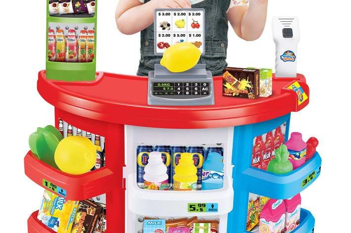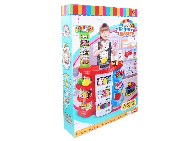 A jde se nakupovat do supermarketu! Celá rodina čeká, aby si u tebe nakoupili a prohodili několik slov. Aby ne, kde jinde by našli za pultem někoho tak milého a šikovného? Nezapomeň zase doplnit zboží! Čtečka kódů vydává zvukové a světelné efekty.