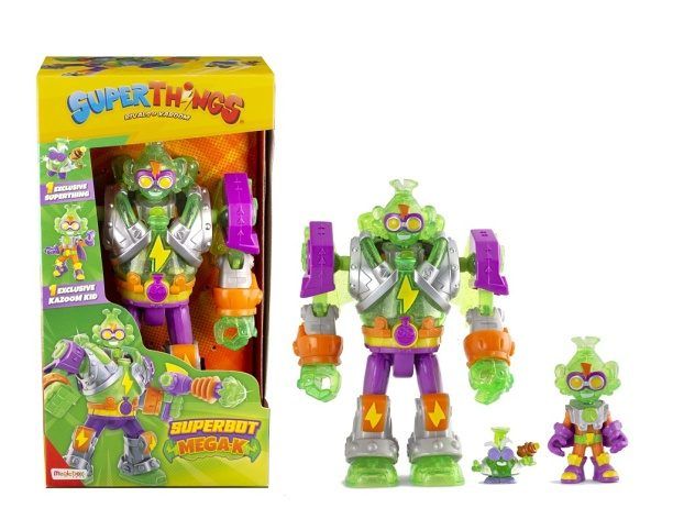 Superbot Mega-K je připraven vyzvat na souboj všechny hrdiny! Dokáže vystřelit energii Kazoom ze speciální zbraně a když se dostane do úzkých, roztáhne křídla a zmizí všem protivníkům z dohledu. Dokáže zvítězit v souboji se Superbotem Enigma? Je na vás tuhle bitvu vyhrát! Obsahuje: • 1 Superbot • 1 doplněk • 1 exkluzivní figurka Kazoom Kid • 1 figurka SuperThing