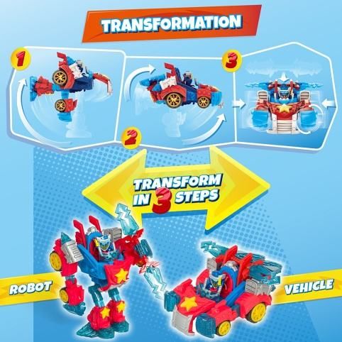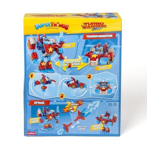 Turbo Warriors dorazili do Kaboom City! Seznamte se s Turbo Power a jeho rivalem Turbo Speed – roboty nové generace, kteří se proměňují ve vozidla! Každý z nich má svou speciální zbraň pro divoké bitvy, a když přijde správný čas, promění se v auto a motorku plné kazoom síly! I když jsou jejich řidiči exkluzivní SuperThings, oba jsou kompatibilní se SuperThings i Kids, takže zábava nikdy nekončí!Obsah balení:• 1 Turbo Warrior• 1 exkluzivní doplněk• 1 exkluzivní SuperThing