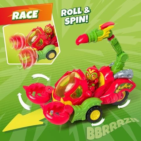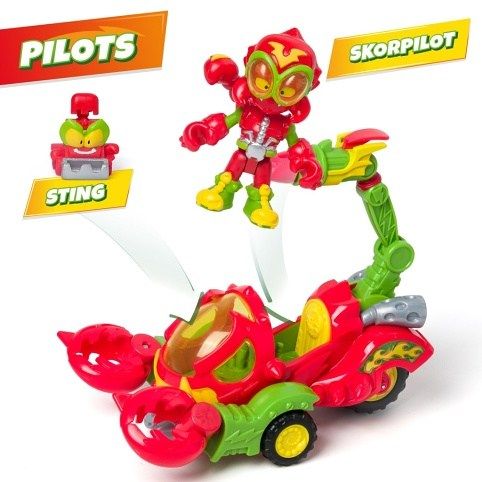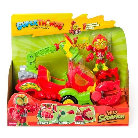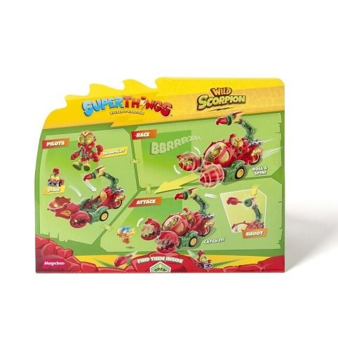 Bojujte na zemi i ve vzduchu s letadlem Wild Eagle a vozidlem Wild Scorpion! S jejich silnými zvířecími útoky a zkušenými piloty vás čeká ten nejdivočejší souboj! Uvolněte plnou sílu škorpiona s exkluzivním Kidem a SuperThingem, kteří mohou usednout za volant. Škorpion má klepeta, která dokážou chytit soupeře, a při pohybu se otáčí. Navíc můžete střílet hrdiny jeho mocným žihadlem.Obsah balení:• 1 vozidlo• 1 exkluzivní Wild Kid• 1 exkluzivní Wild SuperThing• 1 střela