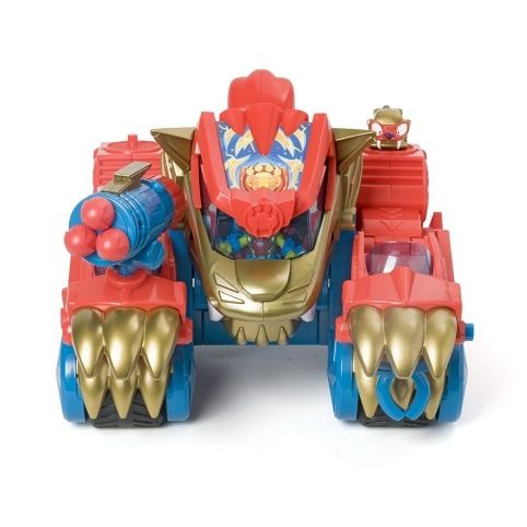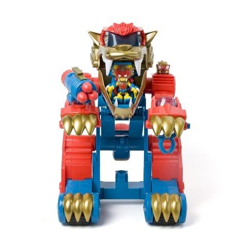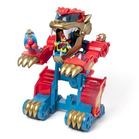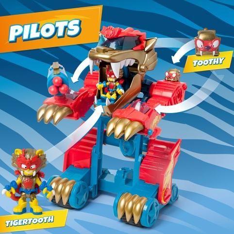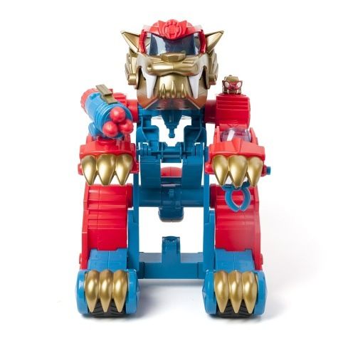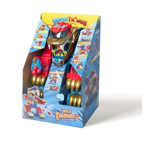 Wild Tigerbot dorazil do ulic Kaboom City a jeho síla je… zvířecí! Je to divoké zvíře, nebo obří robot? Stačí stisknout ocas a Tigerbot se přepne z režimu ZÁVOD do režimu ÚTOK. V klepetech ukrývá 2 různé útočné funkce. Jedno klepeto vystřeluje zatahovací dráp, který chytá SuperThings, a druhé klepeto má samopal, který vystřelí až 3 střely. Tigerbot obsahuje exkluzivního Wild Kida „Tigertooth“ a Wild SuperThing „Toothy“. Umístěte Kida do tlamy tygra, aby pilotoval robota, a SuperThinga na různé kolíky, aby koordinoval útoky.Obsah balení: • 1 Tigerbot• 1 exkluzivní Wild Kid• 1 exkluzivní Wild SuperThing• 3 střely