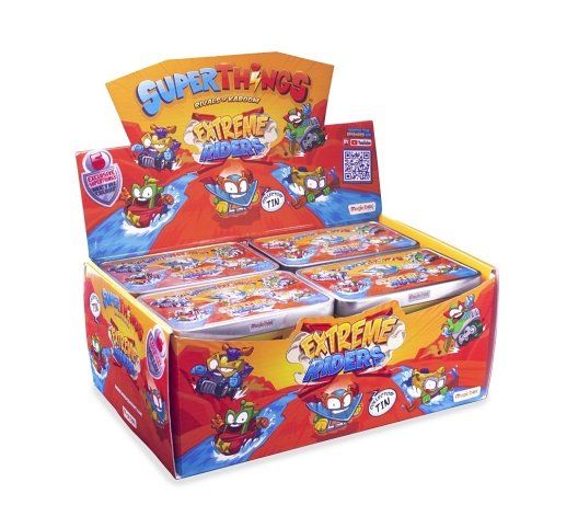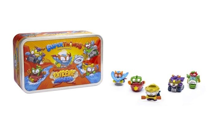 Nová plechová krabička SuperThings obsahuje 5 hrdinů z týmu Extreme Riders. Tito noví SuperThings pod vedením Windwinga jsou nejrychlejšími a nejodvážnějšími milovníky rychlosti a extrémních sportů. Seznamte se s Wheelerem, Rollerstar, Power Sailor a Flow a připravte se na dobrodružství, které nezná hranic. 5 figurek v imitaci kovu najdete pouze v plechové krabičce, která je ideální také pro přepravu nebo uschování vašich figurek. Obsahuje • 5 figurek SuperThings s kovovým efektem