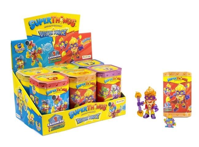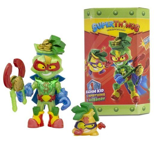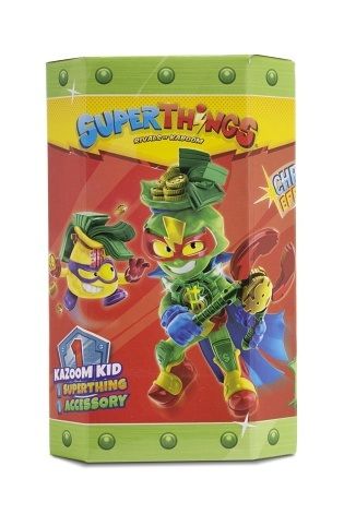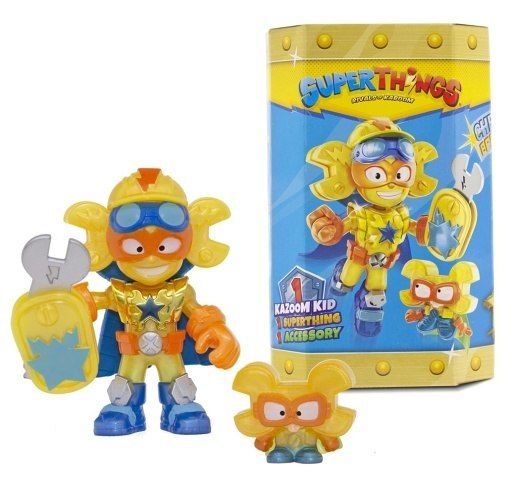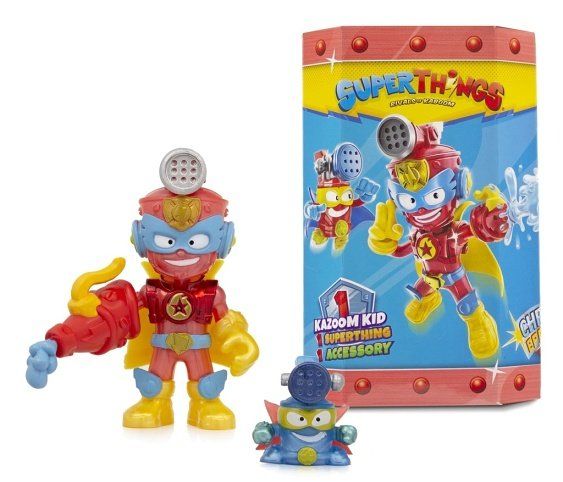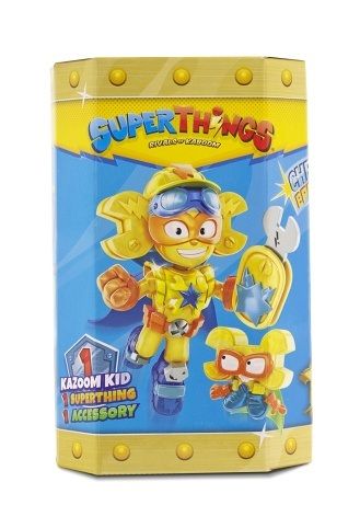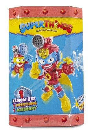 Mocný Kazoomblast nadále produkuje energii, která stojí za magickými událostmi, jaké městečko nikdy nevidělo. V Kaboom City se tak objevilo 6 nových Kazoom Kids, nyní s chromovým efektem! Toolie Kit, Breakmania, Starlock, Cashillion, Watermax a Funfire se připojili k SuperThings v bitvě o nadvládu nad městem. Kdo z nich zvítězí? Pouze vy můžete tento boj rozhodnout! Obsahuje: • 1 figurka Kazoom Kid • 1 figurka SuperThing