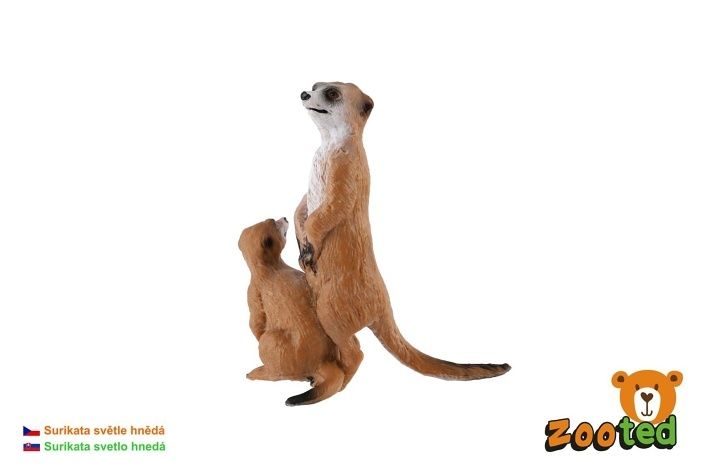 Surikata s mládětem zooted plast 8cm světle hnědá v sáčku