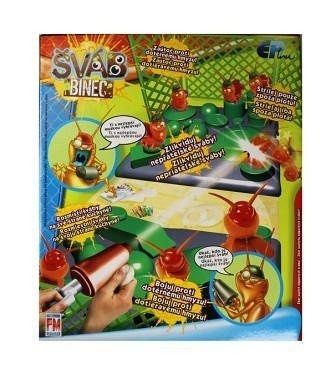Švábbinec je nová společenská hra. Pozor! V kuchyni se rozmnožili švábi! Zlikvidujte je pistolí na hubení hmyzu! Akční hra pro dvě osoby. Zlikvidujte odporné šváby. Nabijte pistoli na hubení hmyzu, zamiřte a pal! Vyhrává lepší střelec. Švábi se skládají ze dvou částí: Hlavy a těla. Úkolem je co nejrychleji sestřelit všechny švábí hlavy. Balení obsahuje: 10 švábů, hrací plochu, 2 základny, 2 velké čelní zábrany, 4 menší postranní zábrany. 2 pistole na hubení hmyzu, 10 nábojů a návod.