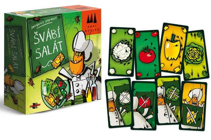 Švábí salát je snadná a velmi rychlá postřehová karetní hra plná zeleniny, přesněji paprik, salátů, květáků a rajčat. Úkolem hráčů je vykládat karty zeleniny a správně je pojmenovat. Že je to tak snadné? Jenom do chvíle, než se do celého procesu zapojí i škodolibí švábi a začnou měnit názvy. Zkuste vytvořit zeleninový salát a (ne)správně pojmenovat přidávané ingredience.