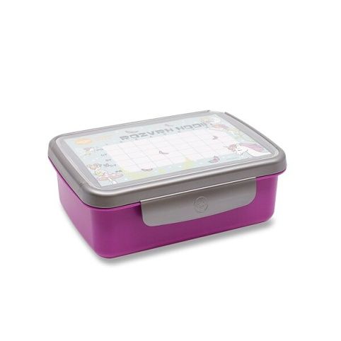 Svačinový box neobsahuje ftaláty, ani změkčovadla. Box je možné mýt v myčce nebo v něm ohřívat svačinky v mikrovlnce., Ke svačinovému boxu je možné objednat i NÁHRADNÍ MISKU, VÍČKO, DĚLÍCÍ PŘEPÁŽKU A ČIROU PRŮHLEDKU., ROZMĚRY: 18 X 13 X 6,5 CM, VÝHODY