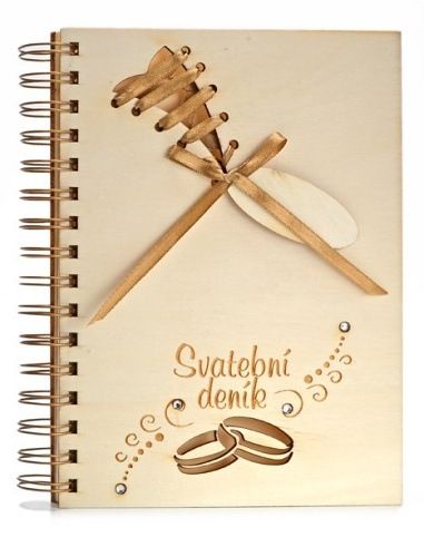 motiv vyřezávaných prstýnků se třpytivými kamínky a výřez ve tvaru šněrovačky s hnědou lesklou stuhou