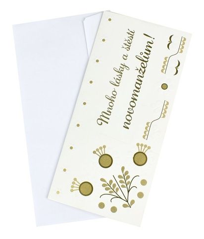 Svatební přání, 10 x 20 cm, bílozlaté květy