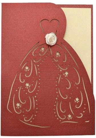 otevírací s velmi jemným prořezáním motivu šatů, pod kterým prosvítá vnitřní papír v gramáži 110 g k doplnění textu