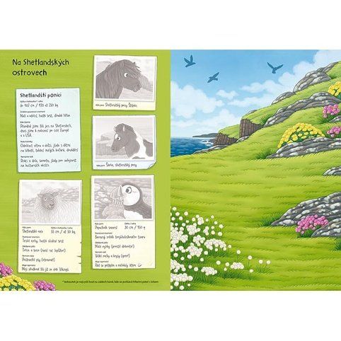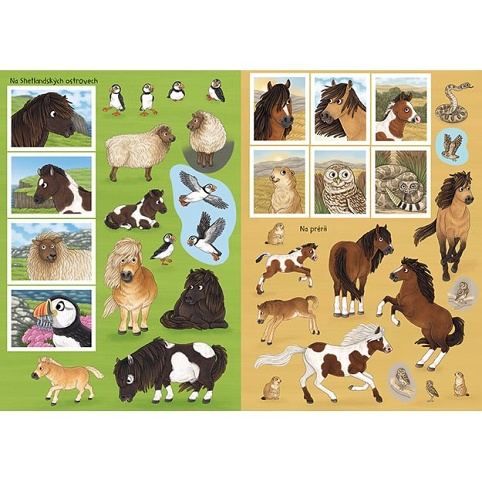 Samolepková knížka obsahuje 24 barevných stran plných různých druhů zvířat a 8 stran samolepek kdolepení.