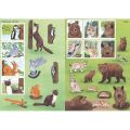 Samolepková knížka obsahuje 24 barevných stran plných různých druhů zvířat a 8 stran samolepek kdolepení.