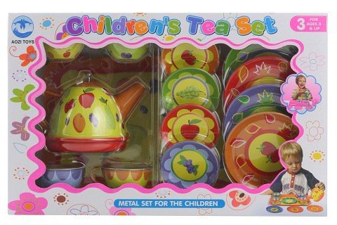 Čajový set obsahuje: 1x konvička cca 11cm, 4x hrníček s podšálkem, 4x talířek a 1x tác. Rozměry balení cca 32 x 20 x 9,5 cm. Věk 3+
