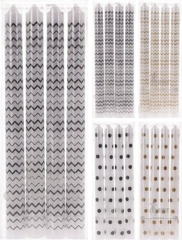 Večerní svíce se vzorem, stříbrná, zlatá, puntíky, vlnky.