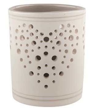 Svícen keramický bílošedý se srdíčkem 9 cm