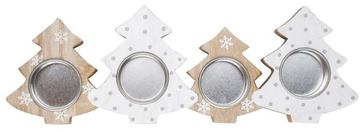 Dřevěný adventní svícen Adventní svícen s motivem stromečků krásně dotvoří váš vánoční stůl. Velmi pěkné zpracování a moderní design, který se hodí téměř do každého interiéru. Svícen je uzpůsobený na čajové svíčky.