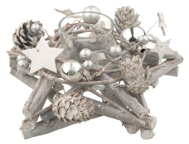 Svícen z větviček hvězda se skleněným kelímkem 17 cm