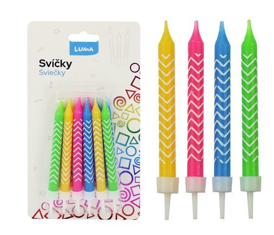 Včetně stojánku na zapíchnutí- 12ks v balení- mix barev- průměr: 7,4mm- výška: 78mm