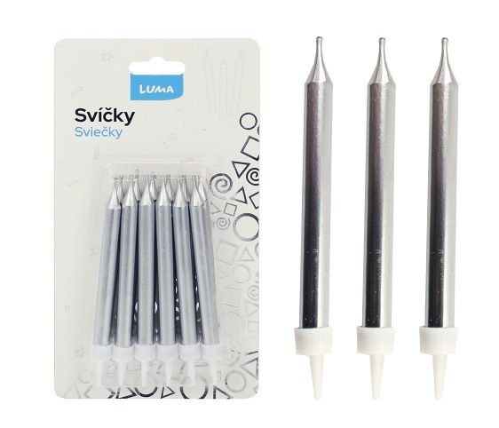 Svíčka 12ks, METAL stříbrná LUMA