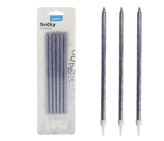 Svíčka 12ks PARTY GLITR stříbrná LUMA