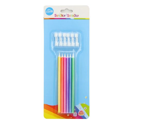 Vhodná jako ozdoba narozeninového dortu- včetně stojánku na zapíchnutí- 12 ks v balení- průměr 5mm- výška 12,5cm