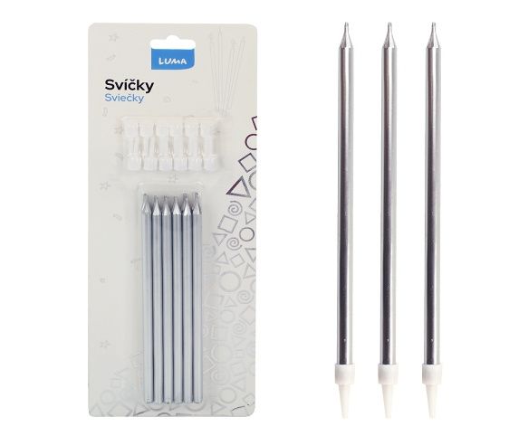 Svíčka 12ks, PARTY stříbrná LUMA