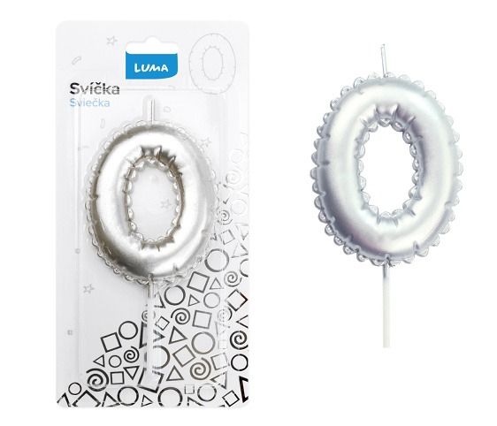 Svíčka č. 0 balónek STŘÍBRNÝ LUMA