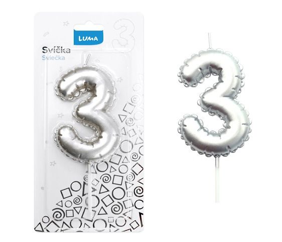 Svíčka č. 3 balónek STŘÍBRNÝ LUMA