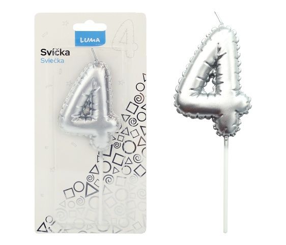 Svíčka č. 4 balónek STŘÍBRNÝ LUMA