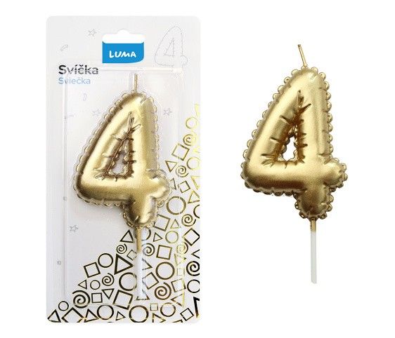 Svíčka č. 4 balónek ZLATÝ LUMA