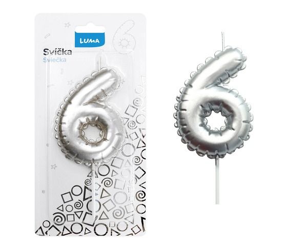 Svíčka č. 6 balónek STŘÍBRNÝ LUMA