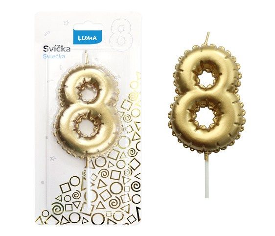 Svíčka č. 8 balónek ZLATÝ LUMA