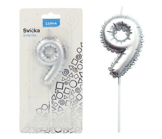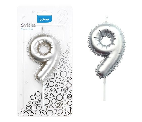 Svíčka č. 9 balónek STŘÍBRNÝ LUMA