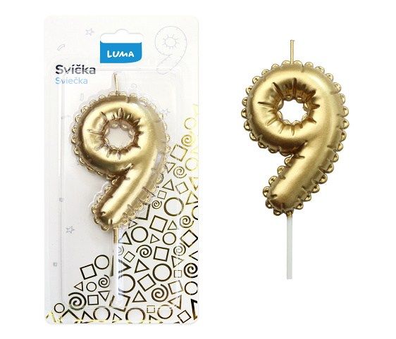 Svíčka č. 9 balónek ZLATÝ LUMA