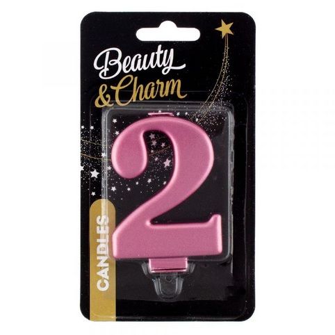 Svíčka dortová - číslice 2, metalická, růžová 8cm