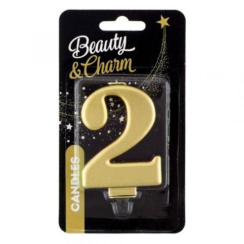Svíčka dortová - číslice 2, metalická zlatá 8cm