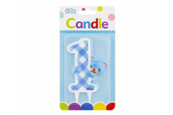 Svíčka dortová JUMBO číslo 1 modrá s medvídkem