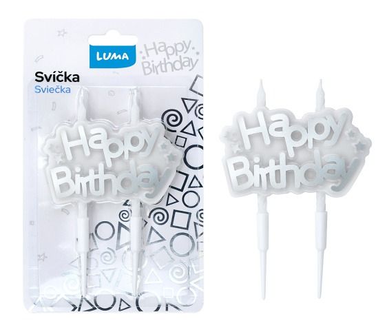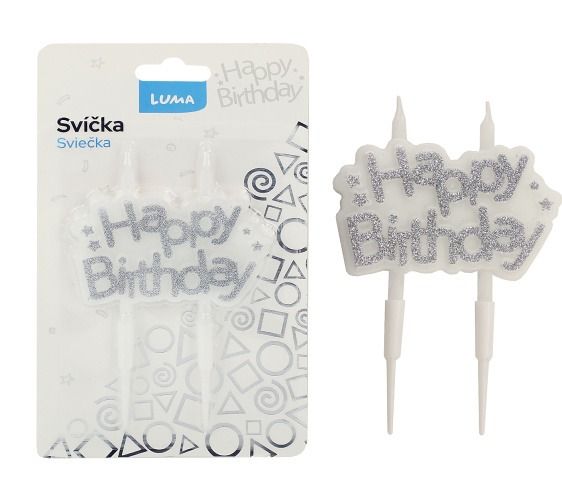 Svíčka HAPPY BIRTHDAY stříbrná LUMA