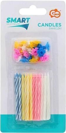 Balení obsahuje 24 svíček v různých barvách se stojánkem