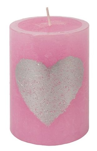 Svíčka růžová se srdcem válec 7 x 10 cm, 35 hodin