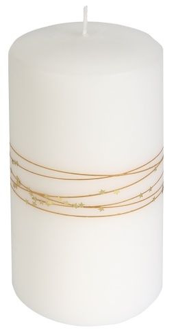Svíčka válec bílá se zlatými proužky 70x140 mm GALAXY