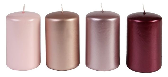 Svíčka válec růžová LAK 60x100 mm, 4 ks mix barev