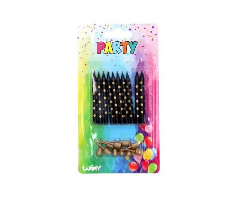 Svíčky 10ks + stojánky 10ks zlaté tečky