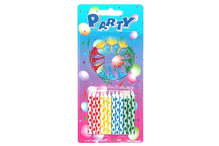 Barevné party svíčky - balení 24 svíček + 12 stojánků